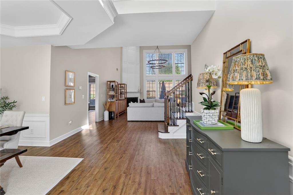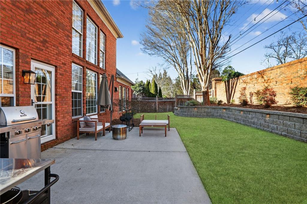 This Vinings Home is a "treasure". OPEN THIS SUNDAY, January 18th, 2:00 p.m. to 4:00 p.m. COME SEE FOR YOURSELF! Four-Sides Brick means less maintenance for you, and Cobb County means the lowest taxes in the Greater Atlanta Area. Enter to an elegant Two-Story Living Area. The Open Floor Plan gives you a clear view of the large Dining Area to the left, the Two-Story Great Room ahead, and the Kitchen to the right. Lots of Windows welcome the natural light, and recently upgraded flooring with a cozy Fireplace warm the space. Updated lighting on the Main Level give the home an up and trendy "sparkle". Even the Powder Room "shines" with its quartz counter vanity and dusty gold fixtures and lighting. The Kitchen includes a breakfast dining space, a large breakfast counter and pantry, and an impressive 5-burner stove with nicely crafted wood hood. The Primary Suite located on the Main Level is an added convenience - generously sized, and adorned with high-quality wood cabinetry in the bath, wood framed mirrors over the double vanity, a wet bar/morning coffee nook, a frameless shower and separate jacuzzi tub, and a large walk-in closet. You won't believe the spacious second level on this home. There, you'll find a generously sized Landing that works as a second living space. Three Bedrooms surround the space PLUS an additional Office/Den. The Bedrooms are all large; two with a jack-and-jill bath, and one with its own bath. Out back is a very Private Yard complimented by a Patio, a brick fence, and a aesthetically-pleasing water feature. This property sits within a couple miles of CANOE Restaurant (one of the highest rated restaurants in the City), as well as the charming shops and restaurants that Vinings has to offer. Within about 3-5 miles are notable locations like the Silver Comet Trail (for walking, running, and cycling), the Paces Mill Nature Preserve off the Chattahoochee River (a gorgeous scenic trail), Truist Park (for watching Atlanta Braves baseball), and the Cobb Energy Performing Arts Center. Cobb County boasts some of the lowest tax rates in the Greater Atlanta Area. Residents age 62 or older are eligible for a senior tax exemption which precludes school tax and thereby offers a significant financial benefit on property taxes. You won't want to miss seeing this property. A FABULOUS Place to call "home".